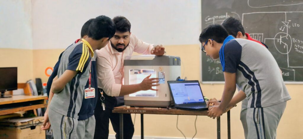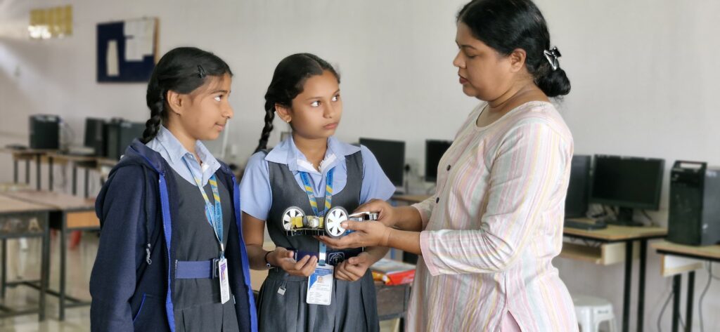 “At our robotics lab, students engage in hands-on learning that combines technology, creativity, and problem-solving. They explore AI in coding, work with electronics and circuit designing, and bring their ideas to life through 3D printing. By building and programming robots, they develop logical thinking and automation skills, while interactive STEAM-based experiments enhance their critical thinking. Through game development, they transform from players to creators, designing AI-powered interactive experiences. Our approach ensures that students from 1st to 10th standard gain future-ready skills in robotics, coding, and innovation—all while having fun!”